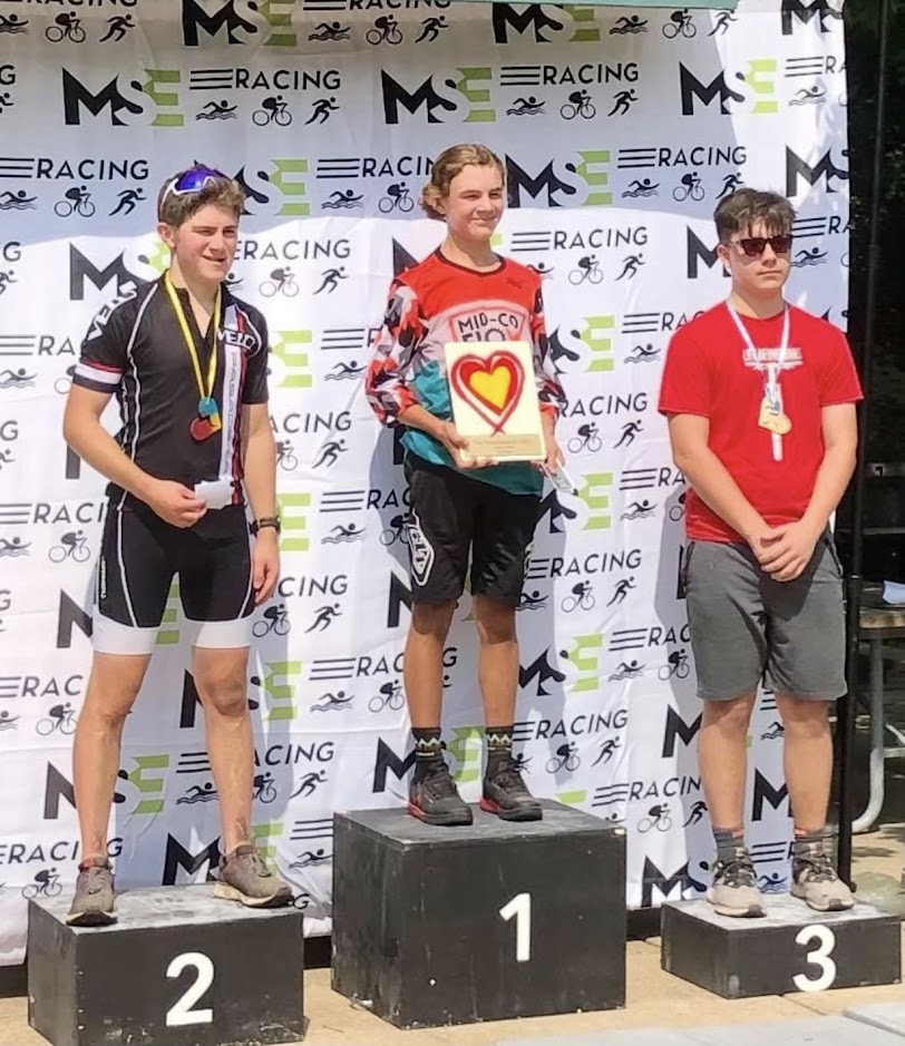 He finished 3rd overall in the juniors, and since they started behind the Marathon class as well as the Category 3 class, he had a lot of traffic to pass through. And these three guys passed a LOT of the field en route to their finish. Very proud of him!